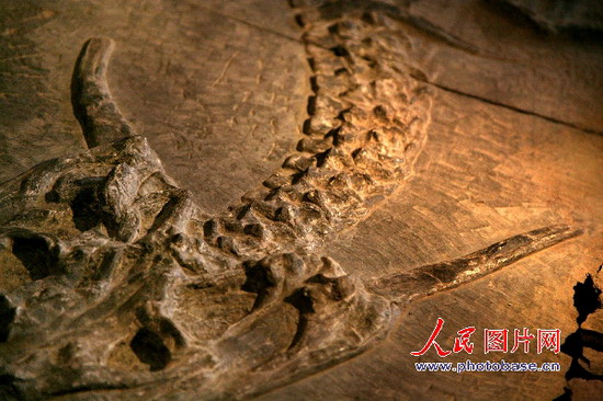 这块被命名为“新中国龙”的化石,于1996年在贵州省安顺市关岭县出土,保存极为完整。它全长7.6米,头部三角形,最引人注目的是——其头部最宽处,对称地生长着一对长约27厘米的“龙角”,双角微弯,从头部两侧翘起,形态与传说中的龙角极为神似。