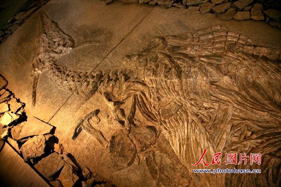 据古生物专家鉴定,新中国龙是生活在两亿多年前三叠纪的水生爬行动物,虽水陆两栖,但大部分时间在水中游弋,以捕食鱼类为生。